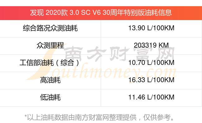根据车主实测数据,该车型低油耗为11.46L/100km,高油耗为16.33L/100km,综合路况众测油耗为13.90L/100km,工信部综合油耗为10.70L/100km。