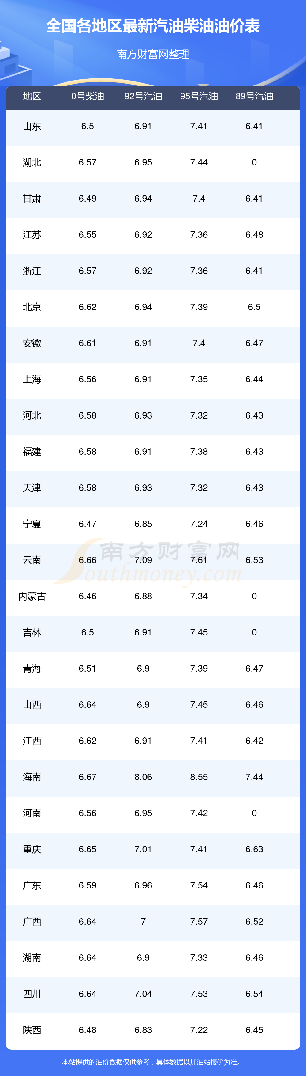 2025年11月18日全国各地油价调整及最新汽油价格表