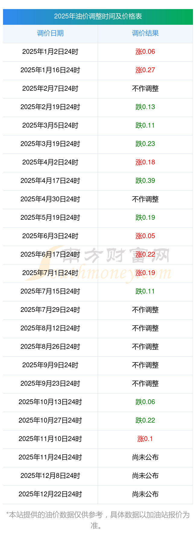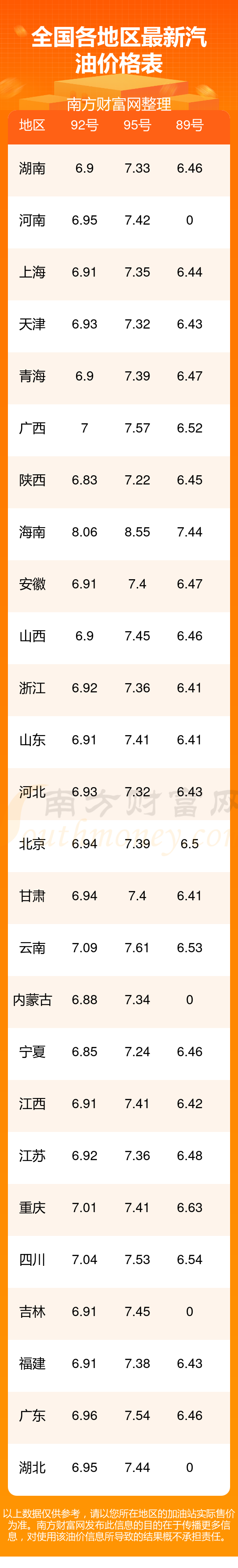 汽油价格调整最新消息:下一轮油价调整11月24日24时开启。这一轮油价调整的时间是11月11日,调整后全国油价的具体价格为:92号汽油平均价格为7元每升,其中,最低的是陕西,6.83元每升,最高的是海南,8.06元每升。95号汽油平均价格为7元每升,其中,最低的是陕西,7.22元每升,最高的是海南,8.55元每升。0号柴油平均价格为:7元每升,其中,最低的是内蒙古,6.46元每升,最高的是海南,6.67元每升。89号汽油平均价格为7元每升,其中,最低的是浙江,6.41元每升,最高的是海南,7.44元每升。
