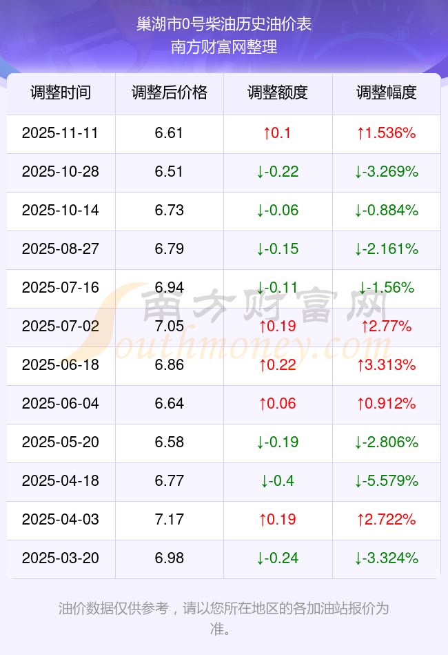 本站提供的油价数据仅供参考,具体数据以加油站报价为准。