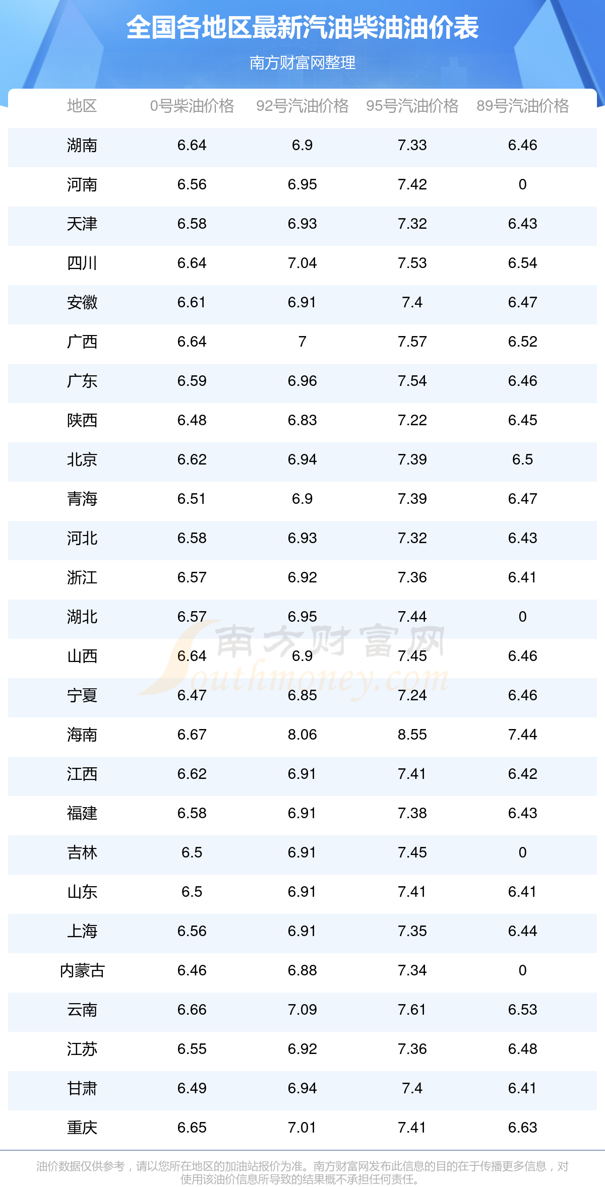 以上数据仅供参考,请以您所在地区的加油站实际售价为准。开云手机web版登录入口发布此信息的目的在于传播更多信息,对使用该油价信息所导致的结果概不承担责任。