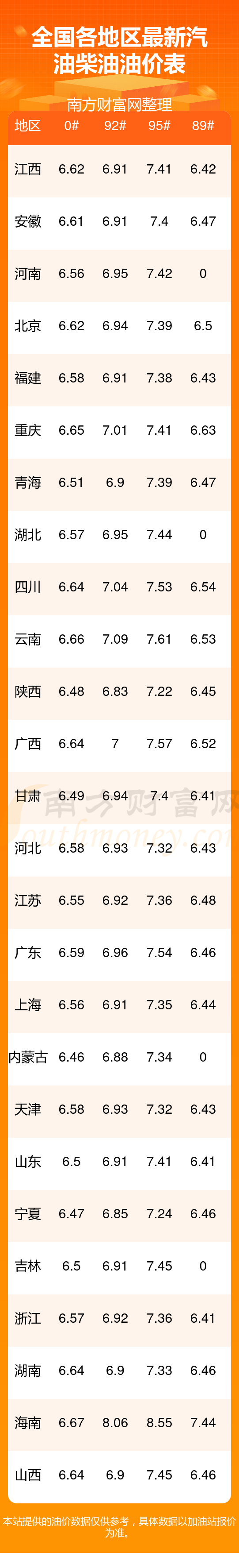 本站提供的油价数据仅供参考,具体数据以加油站报价为准。