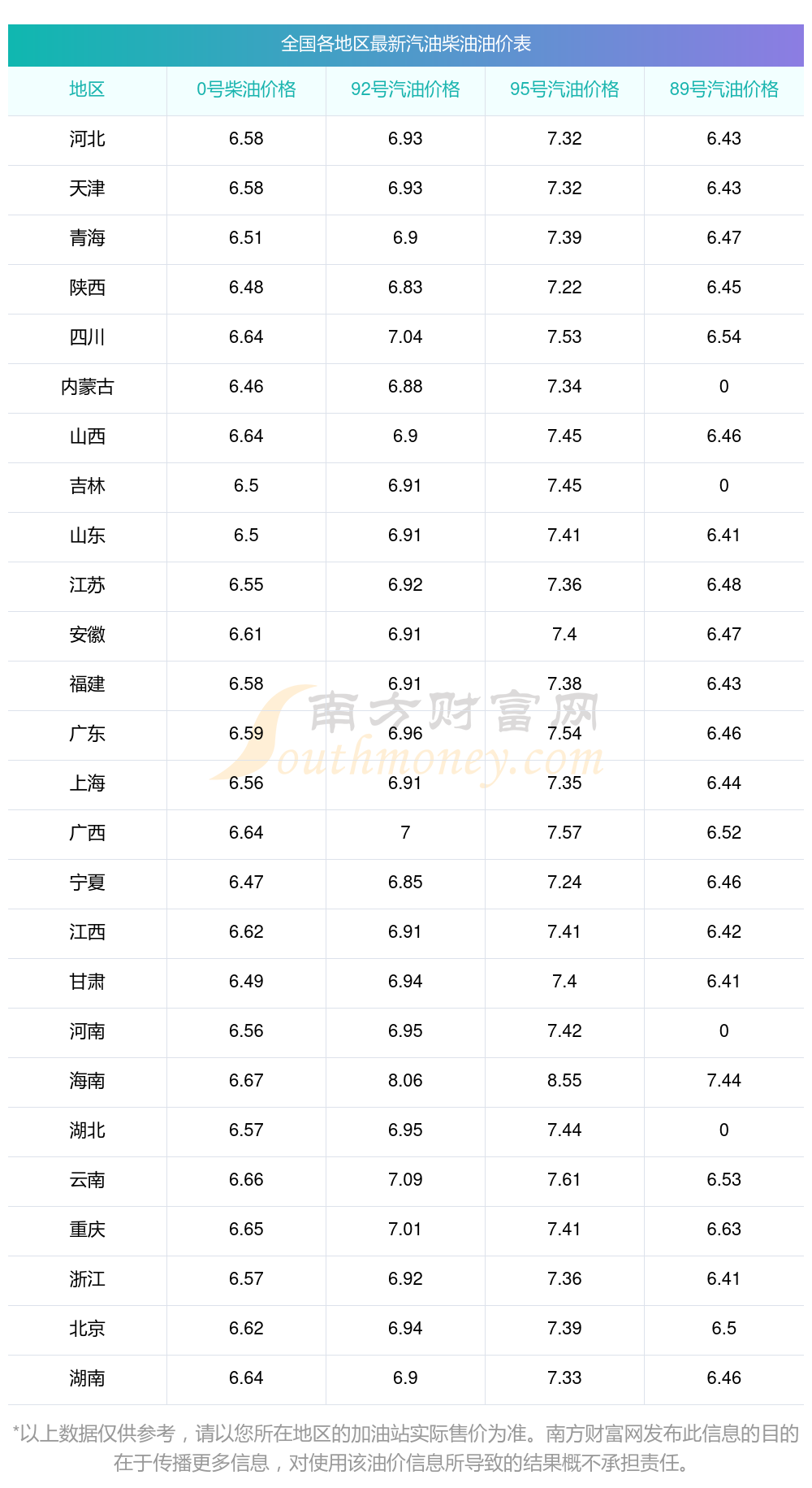 以上数据仅供参考,请以您所在地区的加油站实际售价为准。开云手机web版登录入口发布此信息的目的在于传播更多信息,对使用该油价信息所导致的结果概不承担责任。