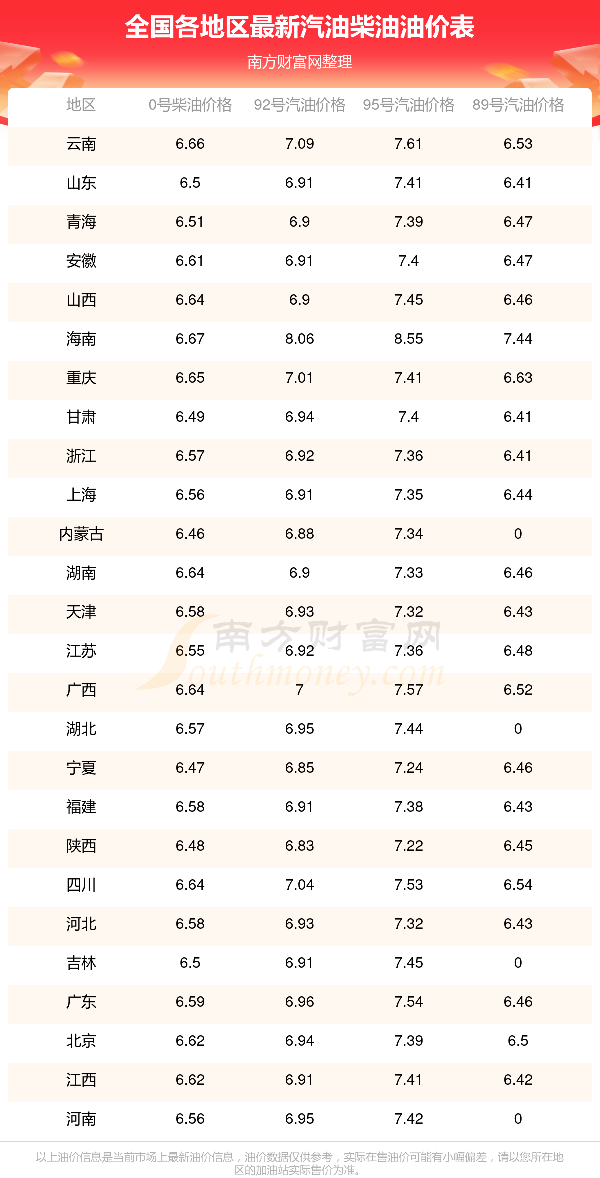本站提供的油价数据仅供参考,具体数据以加油站报价为准。