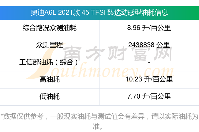 根据多位车主实测得出数据,该车型低油耗为7.70升/百公里,高油耗为10.23升/百公里,综合路况众测油耗为8.96升/百公里。