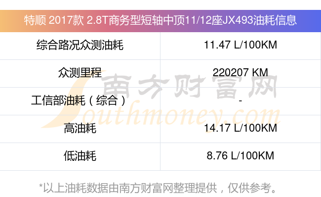 根据车主实测数据,该车型低油耗为8.76升每百公里,高油耗为14.17升每百公里,综合路况众测油耗为11.47升每百公里。