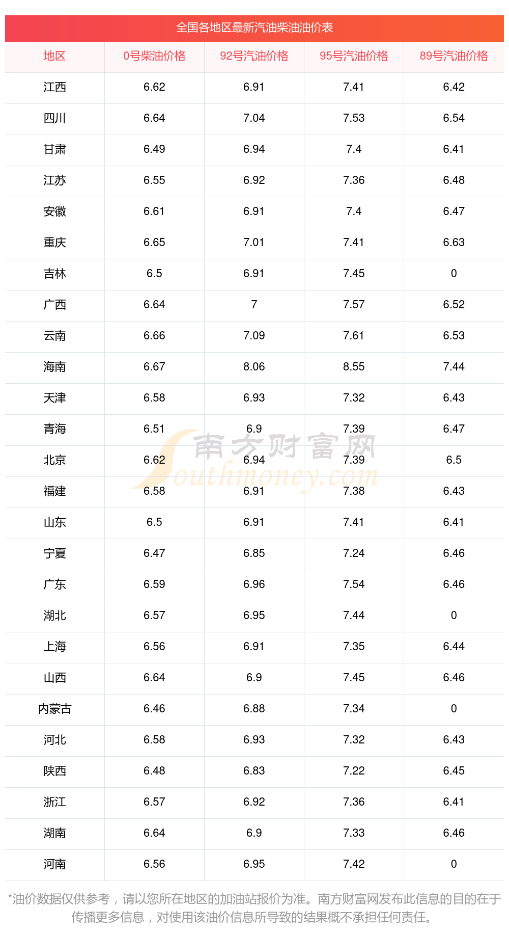 11月19日全国0号柴油每升的价格是多少?具体如下:11月11日油价调整后,平均价格为7元/升,最低的是内蒙古,价格6.46元/升,最高的是海南,价格6.67元/升。,下一轮油价调整时间11月24日24时,距离现在还有5.61天。