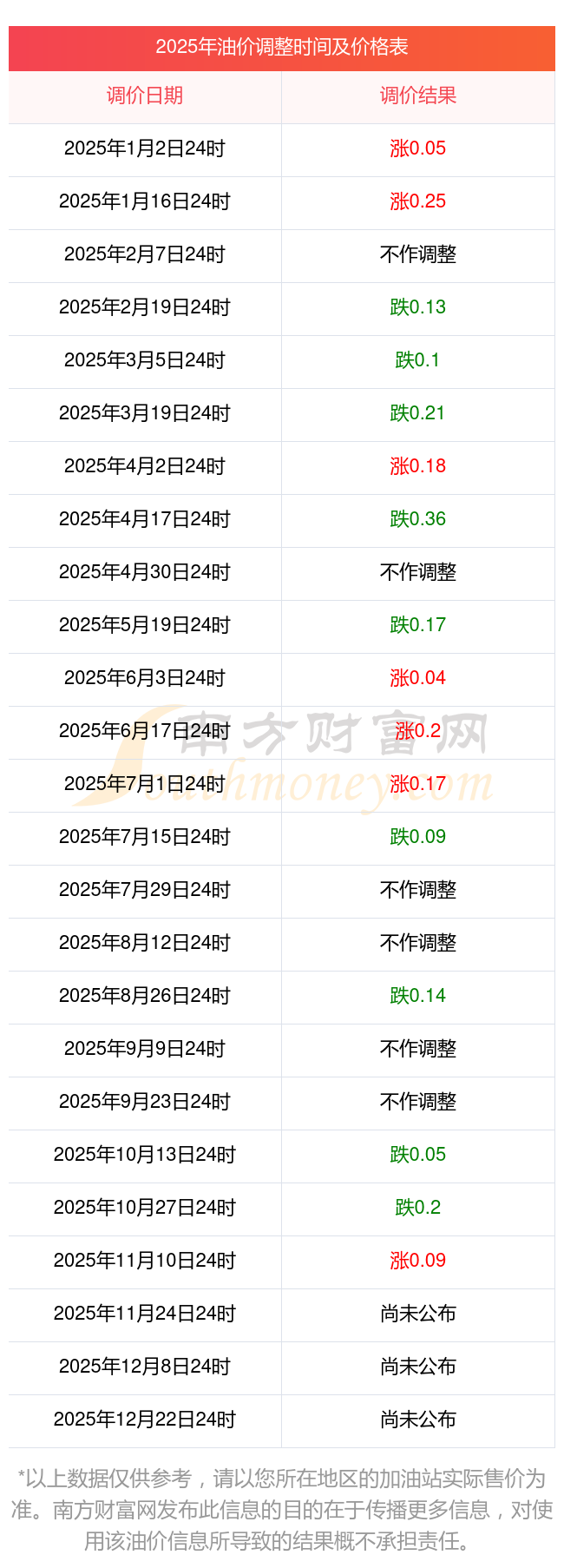 油价调整最新消息:南京汽油、柴油11月19日每升最新价格:92号汽油为6.92元;95号汽油为7.36元;89号汽油为6.48元;0号柴油为6.55元,本轮油价调整时间为11月11日。南京下一轮油价调整时间11月24日24时,距离现在还有5.57天。