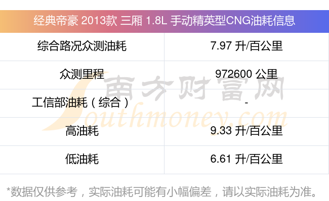 根据多位车主实测得出数据,该车型低油耗为6.61升/百公里,高油耗为9.33升/百公里,综合路况众测油耗为7.97升/百公里。