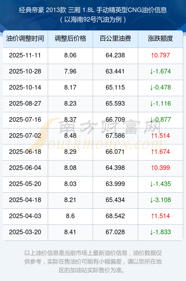 该车型目前采用的是1.8L133马力L4自然吸气发动机,5挡手动挡的变速箱,按92号汽油当前最新价格8.06元/升来计算(以海南为例),平均油费为0.642382元每公里。厂家参考价为8.58万元。