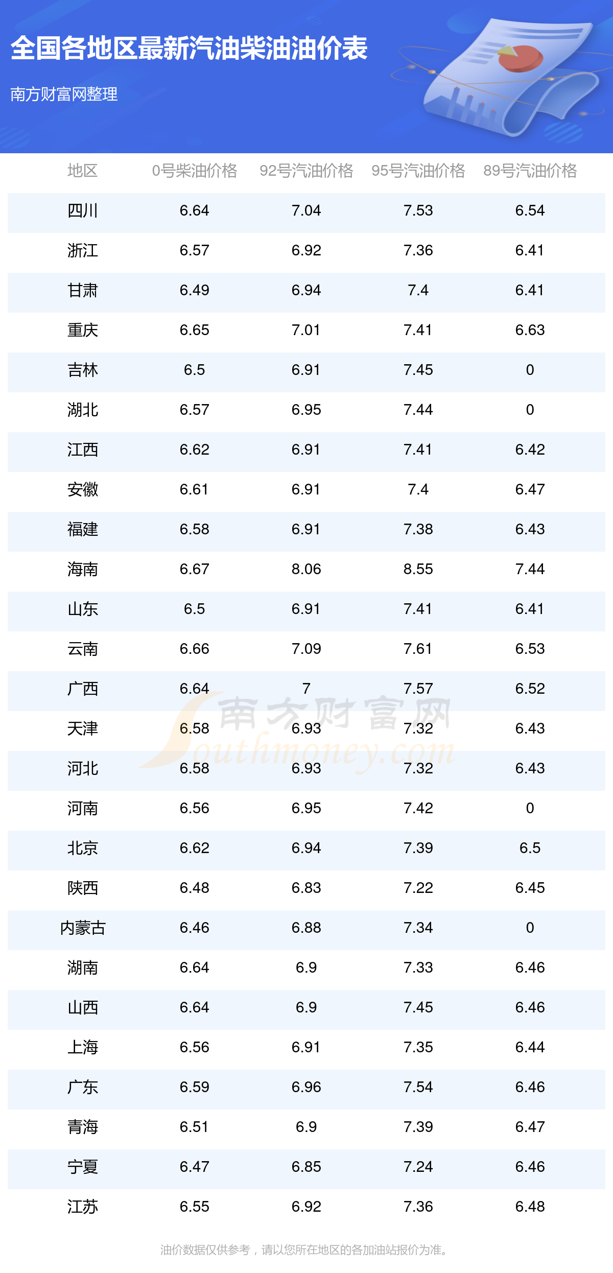油价数据仅供参考,请以您所在地区的各加油站报价为准。