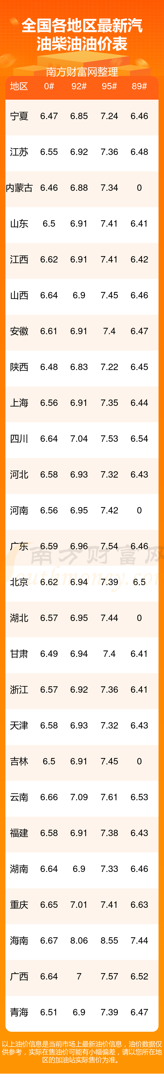 油价数据仅供参考,请以您所在地区的各加油站报价为准。