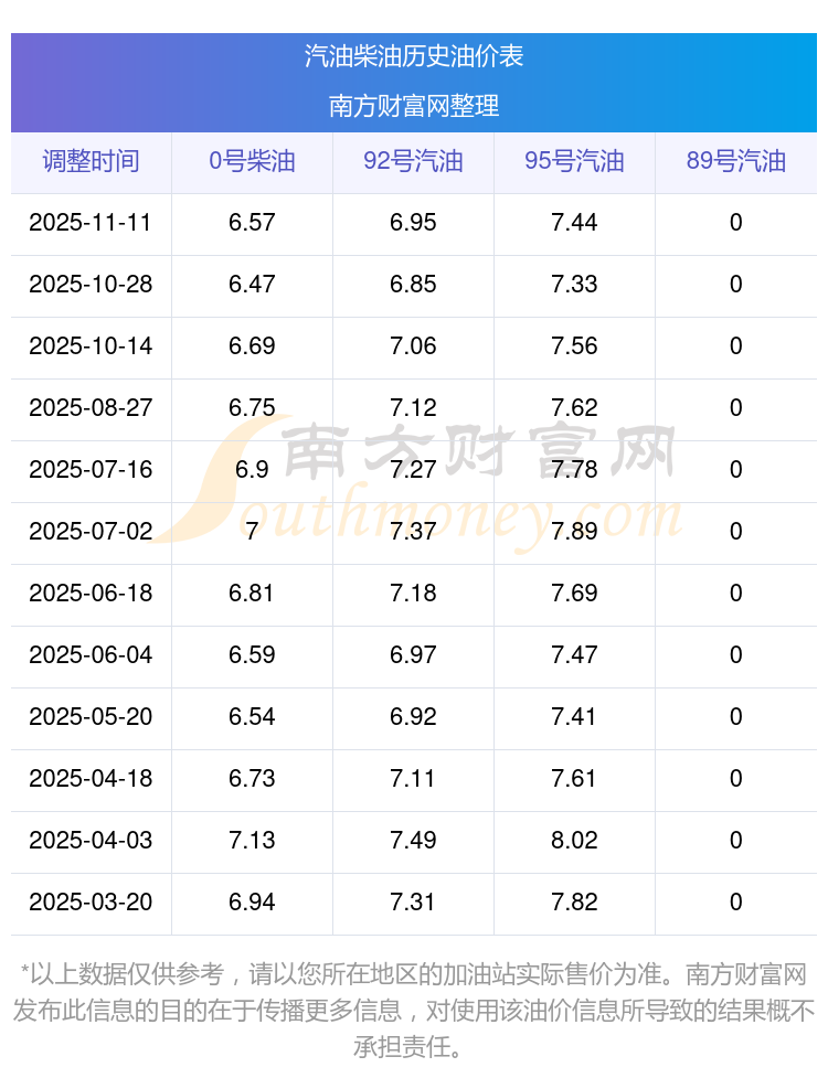 2025年92号汽油价格一览表