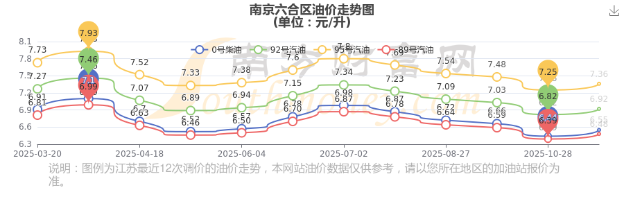 南京六合区11月19日95号汽油历史油价调整走势图