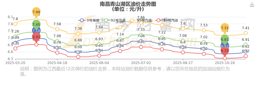 南昌青山湖区11月19日0号柴油历史油价调整走势图