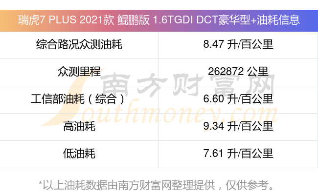 根据多位车主实测得出数据,该车型低油耗为7.61升/百公里,高油耗为9.34升/百公里,综合路况众测油耗为8.47升/百公里,工信部综合油耗为6.60升/百公里。