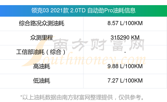 数据仅供参考,一般现实油耗与测试值会有差异,请以实际油耗为准。