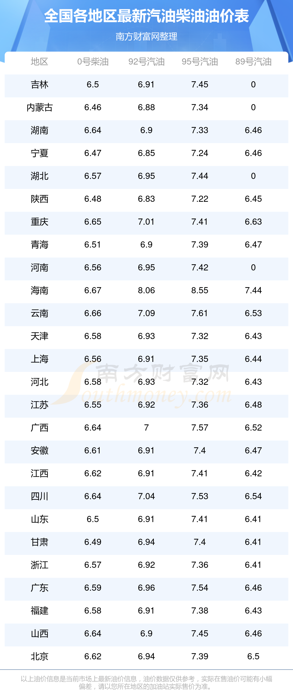 11月19日全国95号汽油最新平均价格为7元每升(本轮油价格调整时间为11月11日),其中,全国95号汽油最低为陕西,价格7.22元/升,95号汽油最高为海南,价格8.55元/升。下一轮油价调整时间11月24日24时,距离现在还有5.37天。