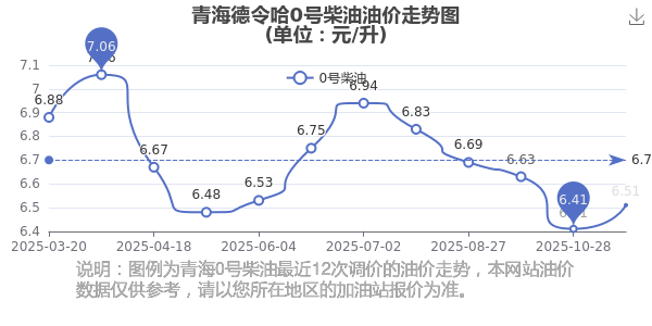 11月19日青海德令哈汽油柴油每升的价格为11月11日调整后的价格,具体如下:92号汽油6.9元;95号汽油7.39元;89号汽油6.47元;0号柴油6.51元。青海德令哈下一轮油价调整时间11月24日24时,距离现在还有5.3天。