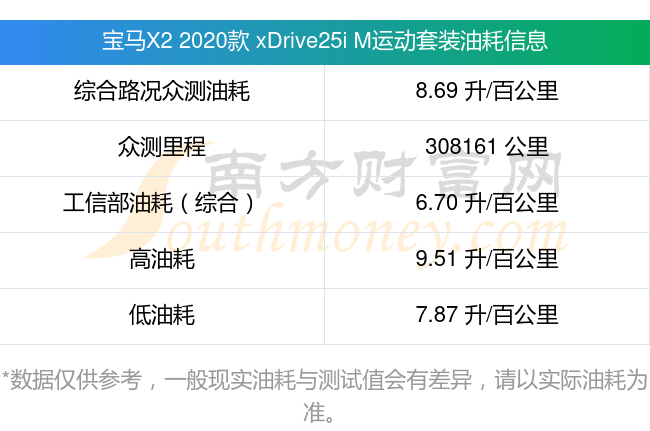 根据多位车主实测得出数据,该车型低油耗为7.87L/100km,高油耗为9.51L/100km,综合路况众测油耗为8.69L/100km,工信部综合油耗为6.70L/100km。