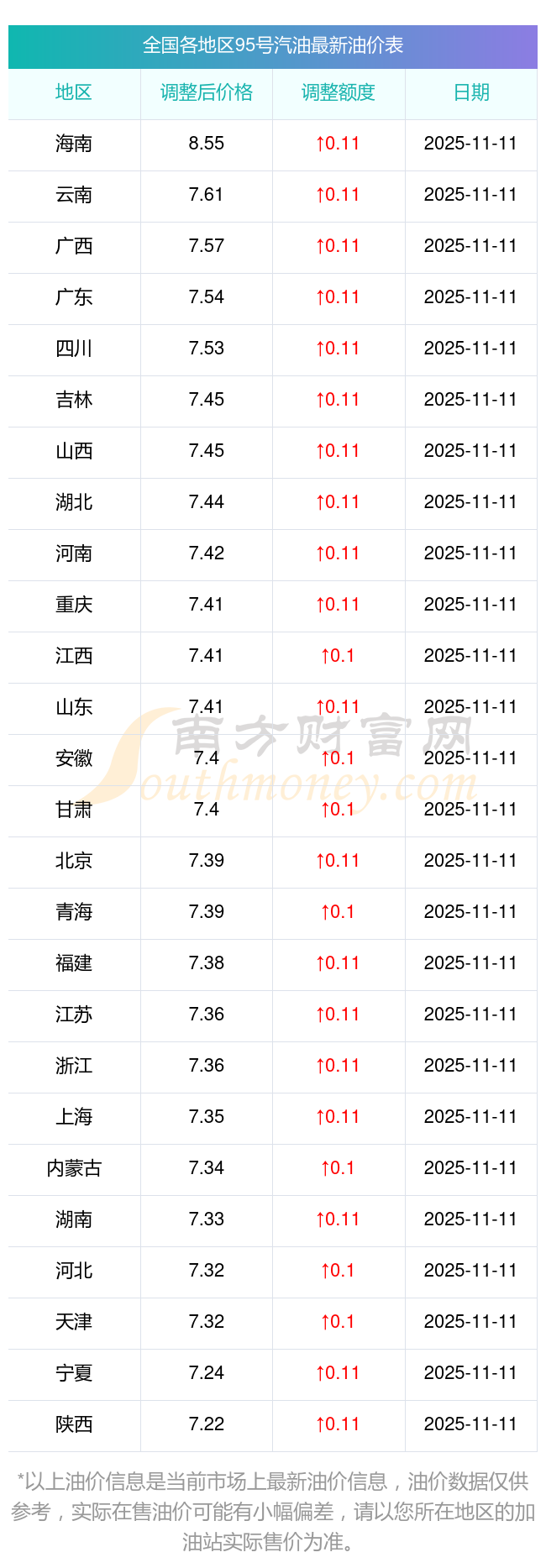 本站提供的油价数据仅供参考,具体数据以加油站报价为准。