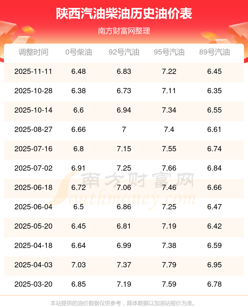 按11月11日95号汽油最新调整价格7.22元每升来计算(以陕西为例),该车型百公里平均油费为49.313元,按上一轮10月28日调整价格7.11元每升来计算,百公里平均油费为48.561元,对比上一轮多花0.751元,下一轮油价调整时间为11月24日24时。