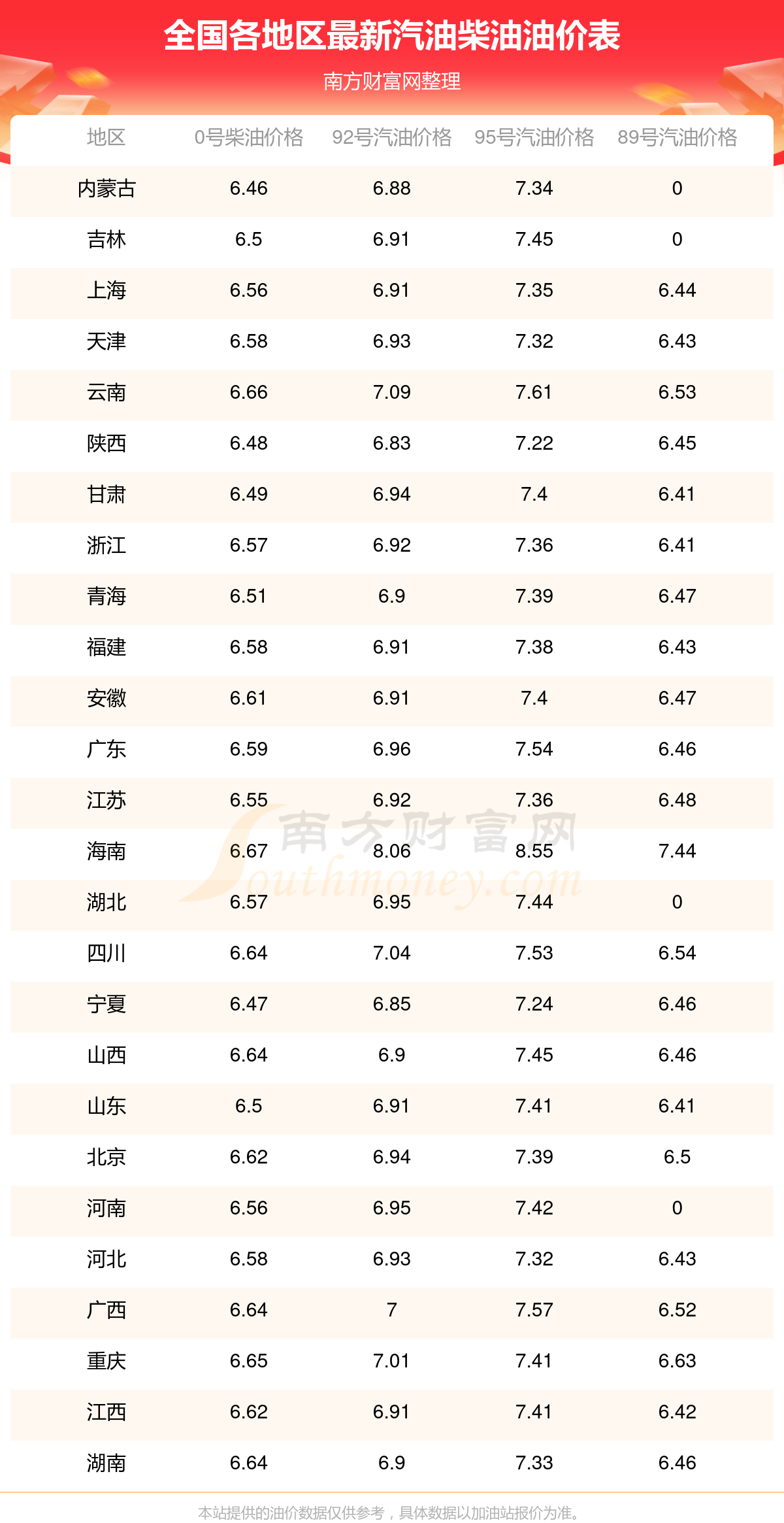 本站提供的油价数据仅供参考,具体数据以加油站报价为准。