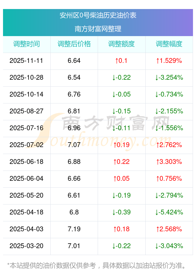 本站提供的油价数据仅供参考,具体数据以加油站报价为准。