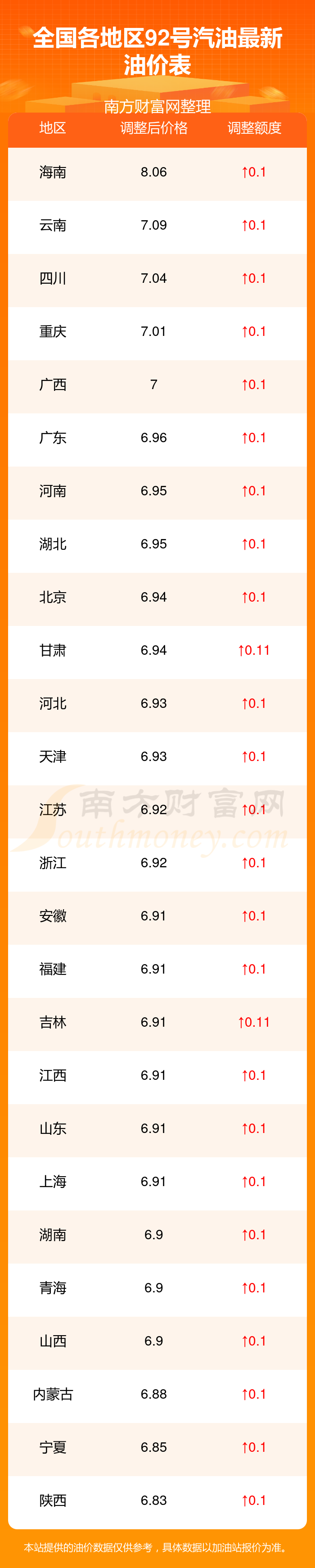以上数据仅供参考,请以您所在地区的加油站实际售价为准。开云手机web版登录入口发布此信息的目的在于传播更多信息,对使用该油价信息所导致的结果概不承担责任。