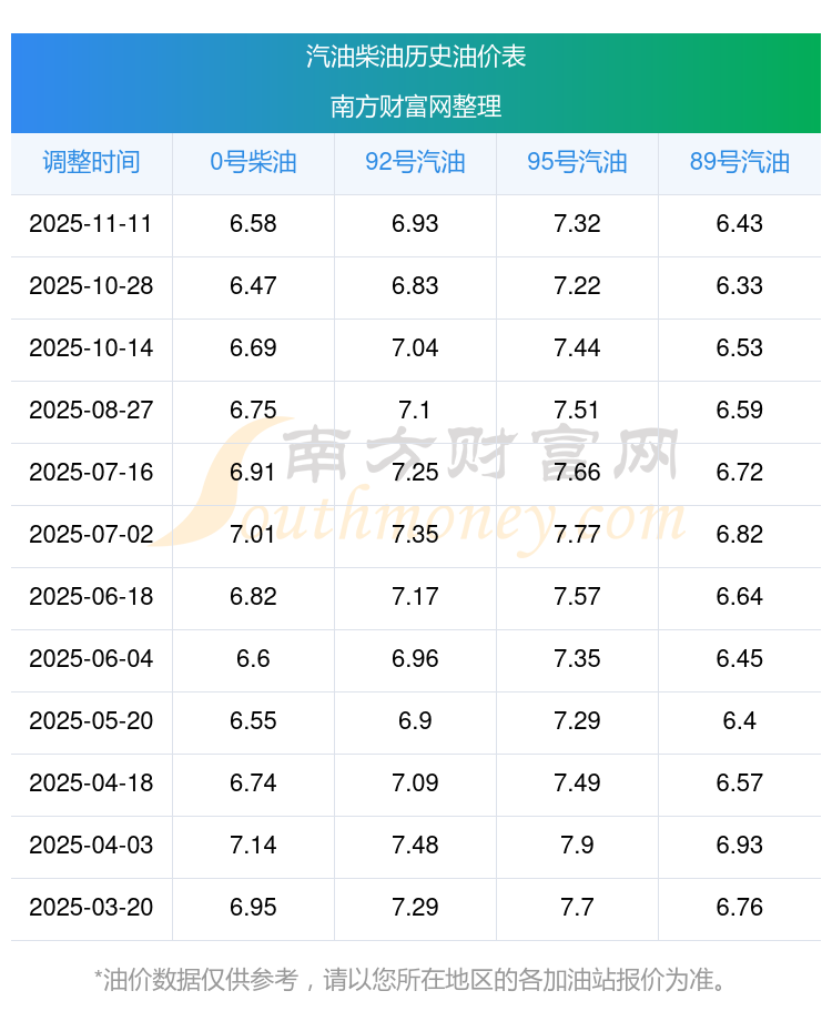 2025年92号汽油价格一览表
