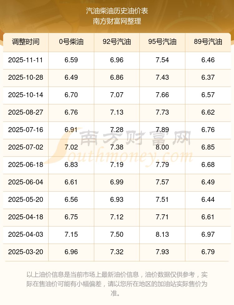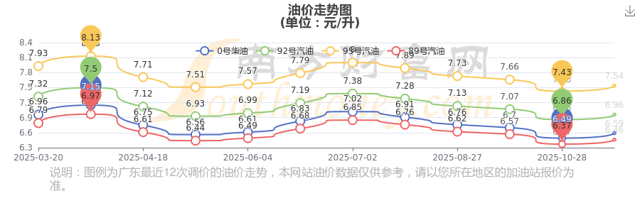 广东云浮92号汽油11月19日的最新价格:11月11日油价调整后,广东云浮92号汽油6.96元/升,相对上次调整时间10月28日的油价6.86元每升,上涨了0.1元,上涨1.458%。下一轮油价调整时间11月24日24时,距离现在还有5.24天。