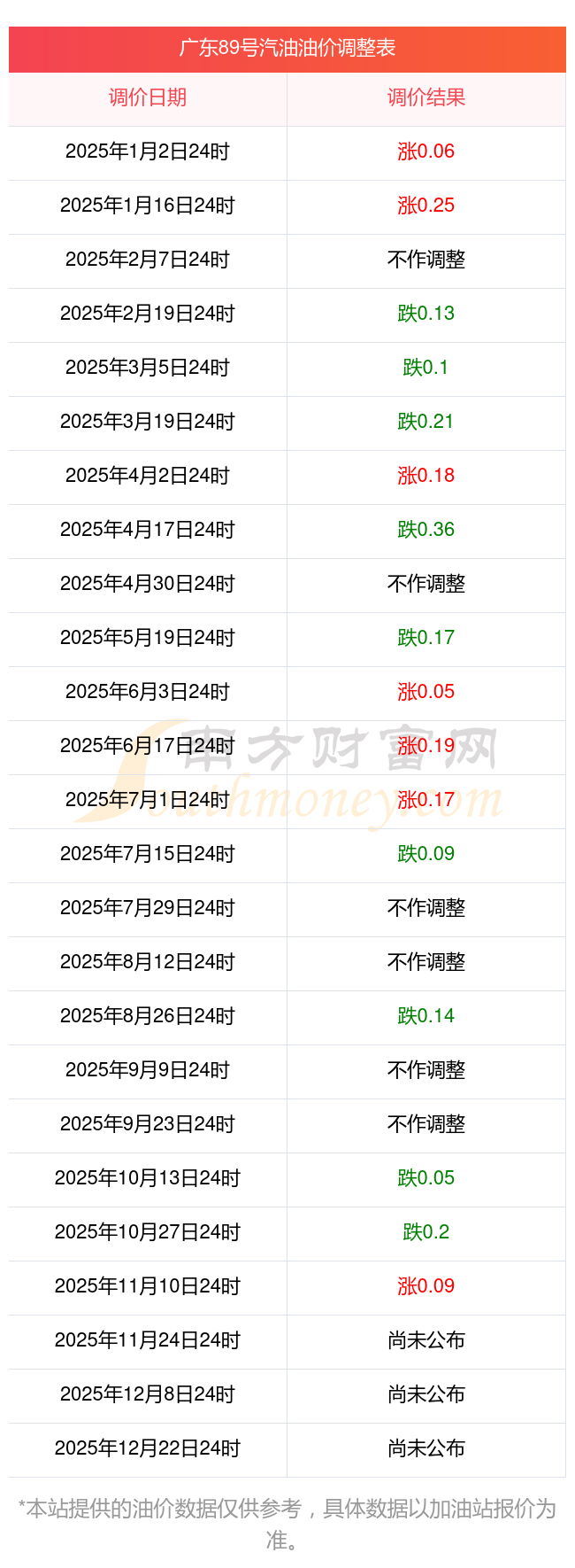 广州萝岗区2025年油价调价窗口日期表: