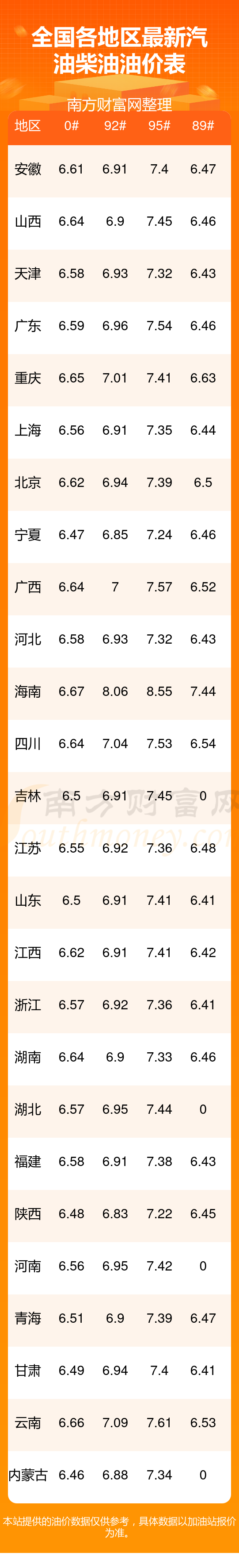 11月20日全国0号柴油最新平均价格为7元每升,本次油价格调整时间为11月11日,其中,全国0号柴油最低为内蒙古,价格6.46元/升,0号柴油最高为海南,价格6.67元/升。,下一轮油价调整时间11月24日24时,距离现在还有4.74天。