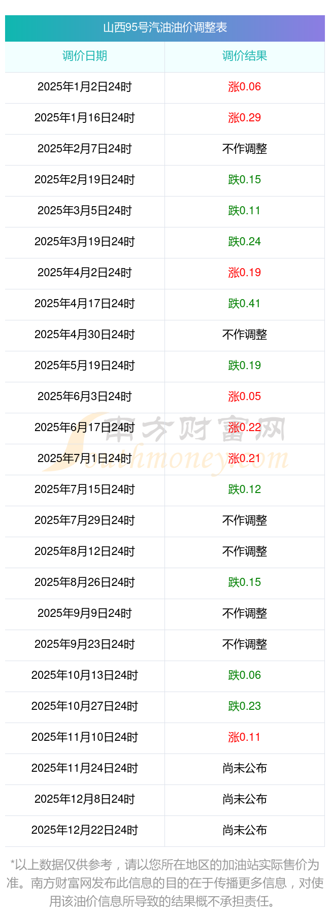本站提供的油价数据仅供参考,具体数据以加油站报价为准。