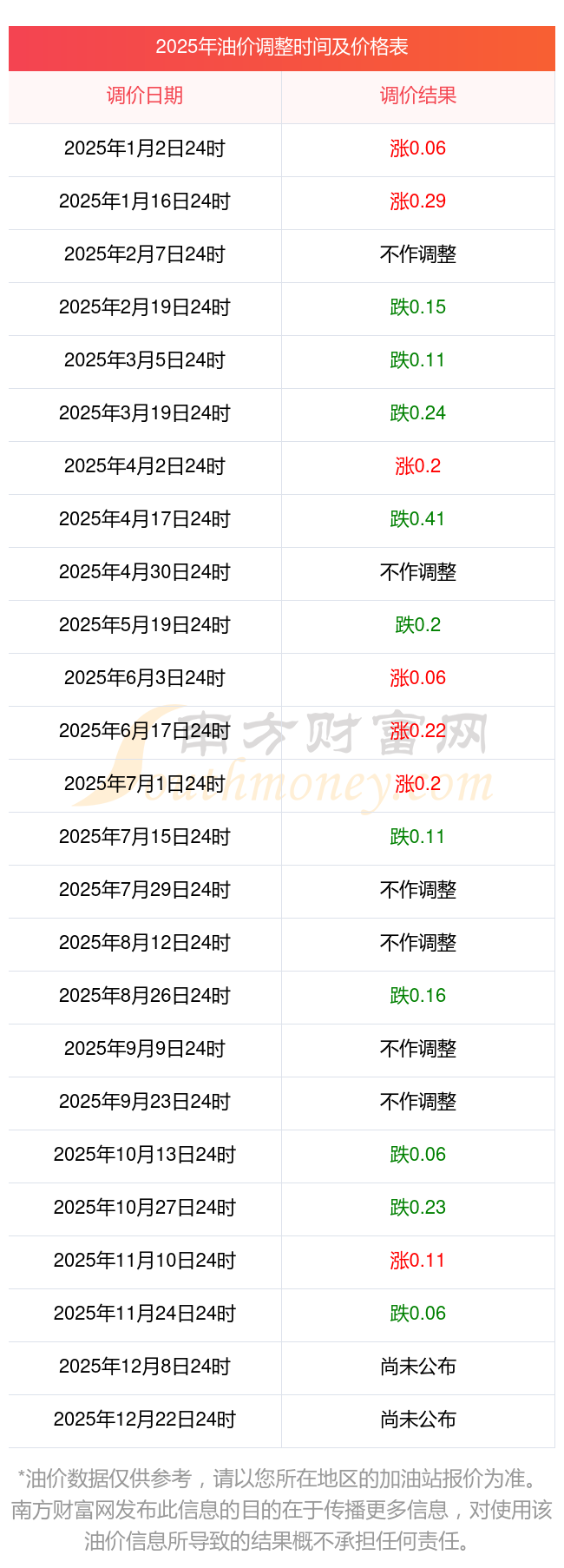 2025年11月25日全国油价调整时间及价格一览表
