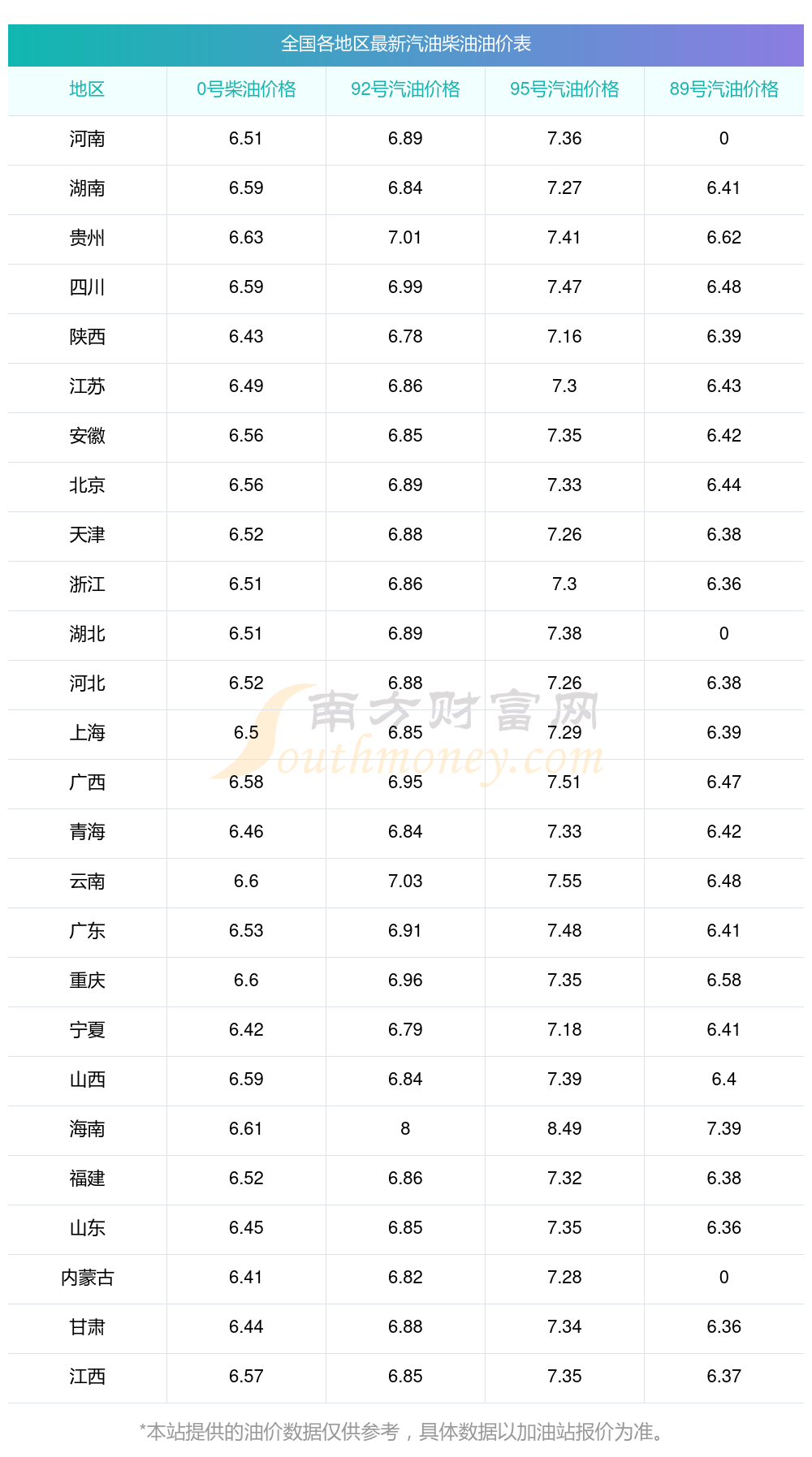 本次油价调整的时间为11月25日 ,调整后全国油价具体为: