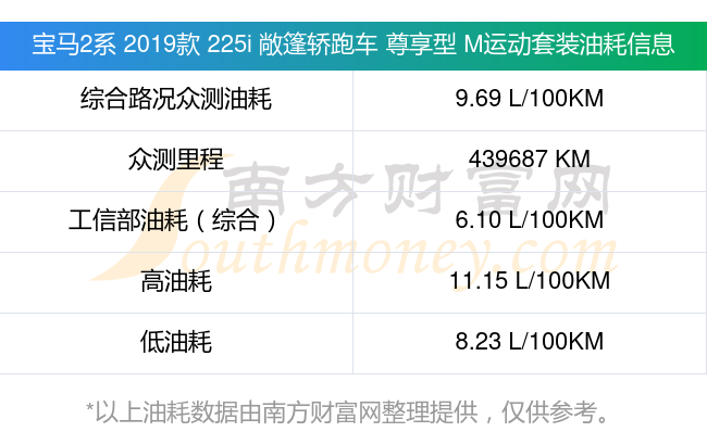 根据车主实测数据,该车型低油耗为8.23升/百公里,高油耗为11.15升/百公里,综合路况众测油耗为9.69升/百公里,工信部综合油耗为6.10升/百公里。