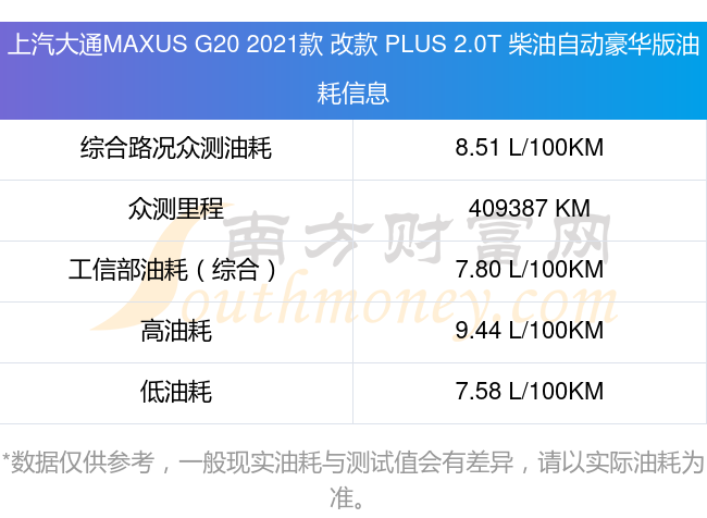 数据仅供参考,一般现实油耗与测试值会有差异,请以实际油耗为准。