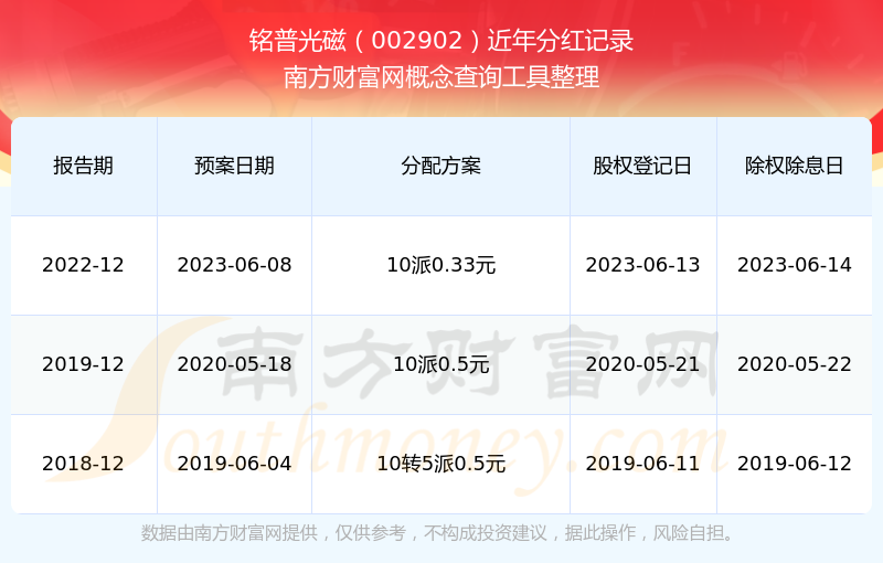铭普光磁历年分红派息情况如下表所示: