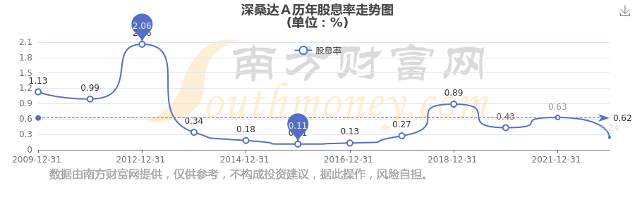 近年深桑达A年度股息率走势如下图: