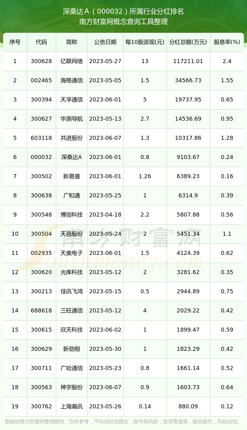 二、深桑达A000032行业分红排名