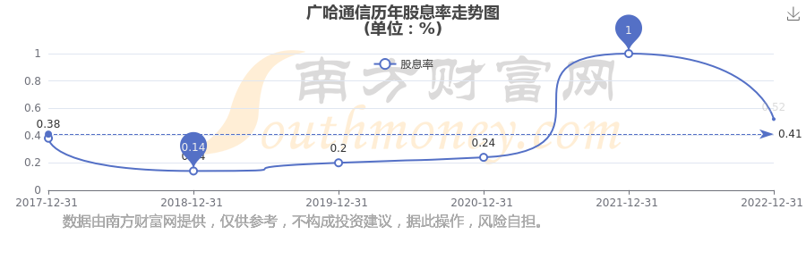 广哈通信最新一次公布的分红方案为10转2派0.8元。本次权益分派股权登记日为2023年5月30日,除权除息日为2023年5月31日,派息日为2023年5月31日。