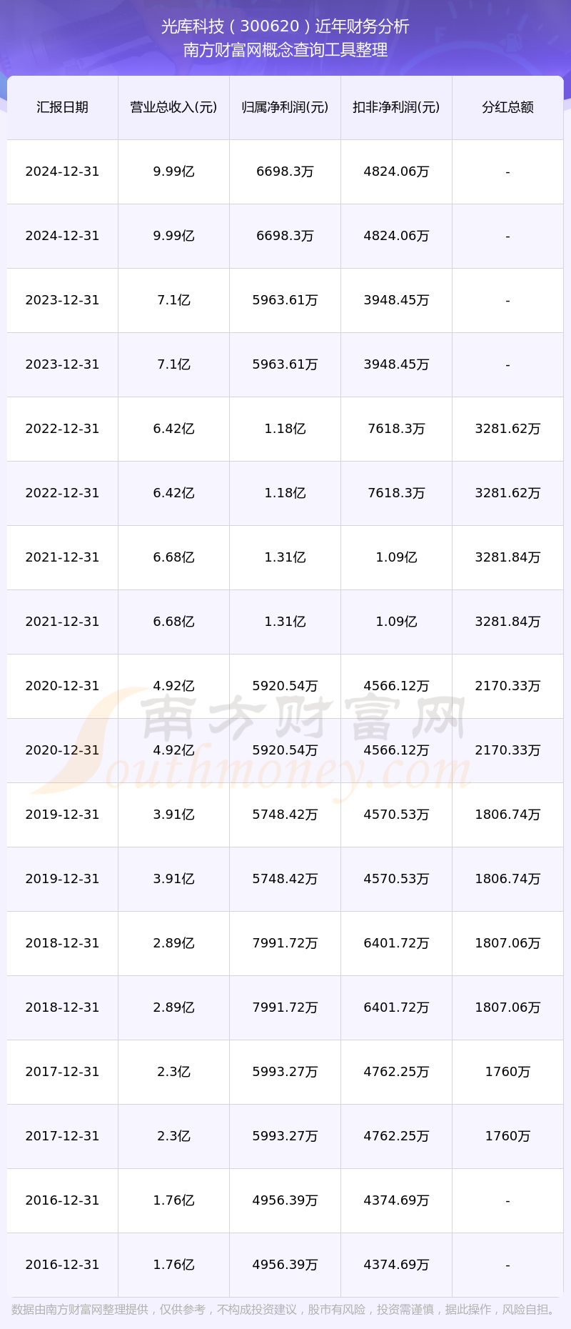 光库科技公司2024年实现营业收入9.99亿元,同比增长40.71%;净利润6698.3万元,同比增长12.32%;毛利率33.88%。