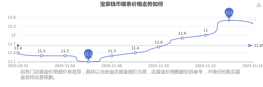 2025年11月16日宝泉钱币银条价格为12.4元/克。