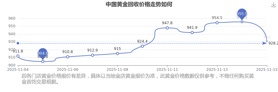 中国黄金今日 回收价的最新市场行情价为931.0元/克。