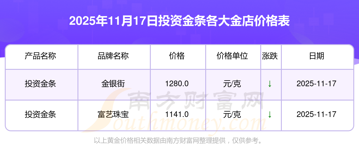 2025年11月17日各金店投资金条价格查询_今日投资金条价格最新参考来了,随小编来看看。