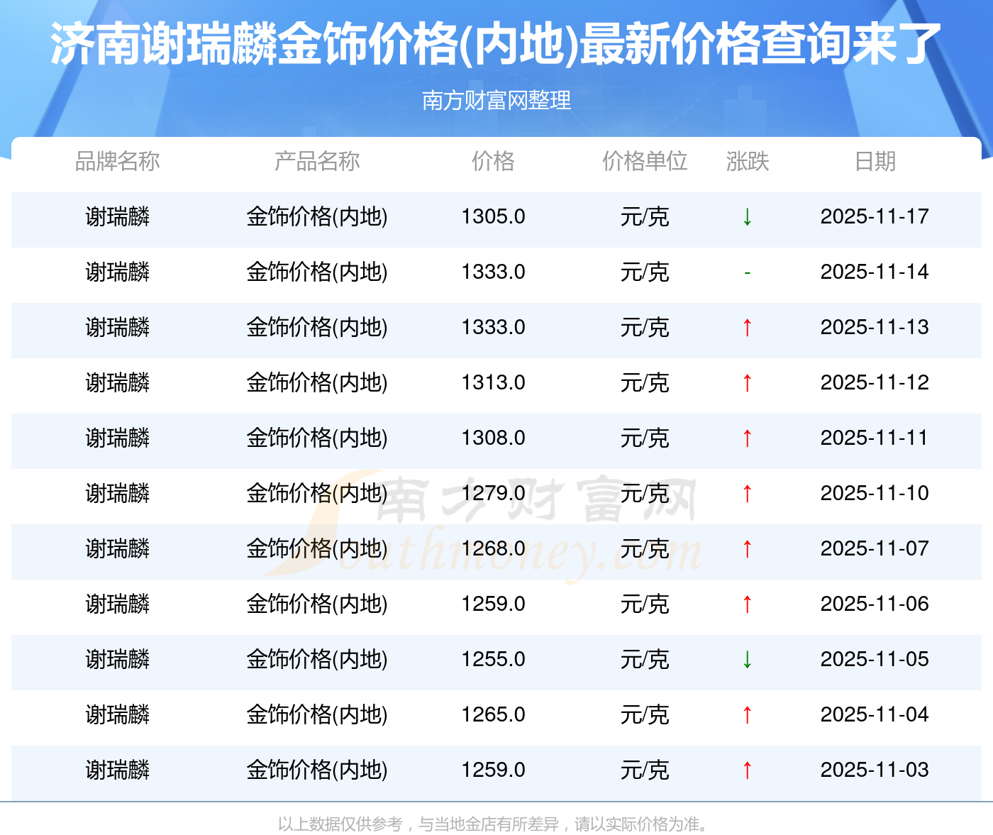 因各门店黄金价格报价有差异,具体以当地金店黄金报价为准,此黄金价格数据仅供参考,不做任何购买黄金首饰交易根据。