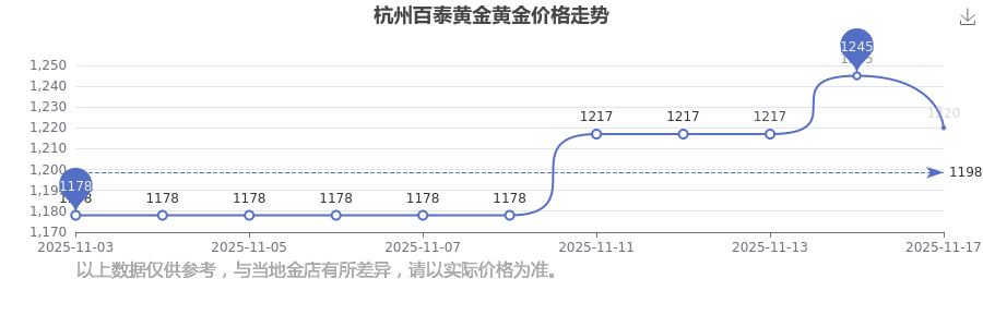 1220.0元/克的黄金价格,是杭州百泰黄金在 2025年11月17日给出的。