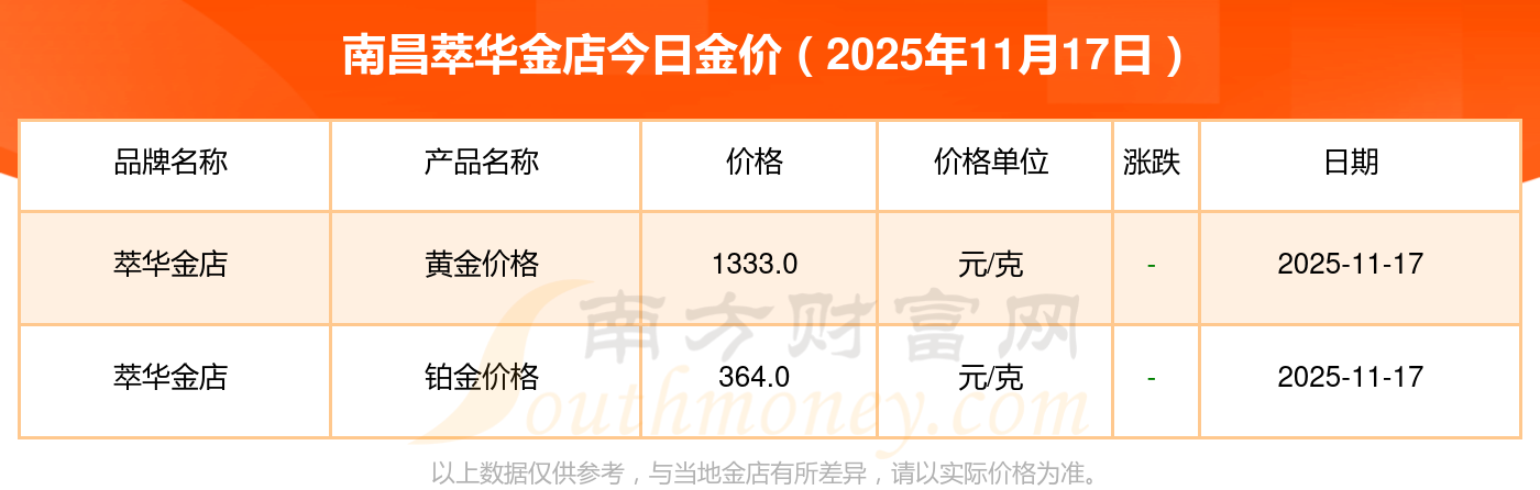 南昌萃华金店今日金价查询_今天报价多少一克(2025年11月17日)