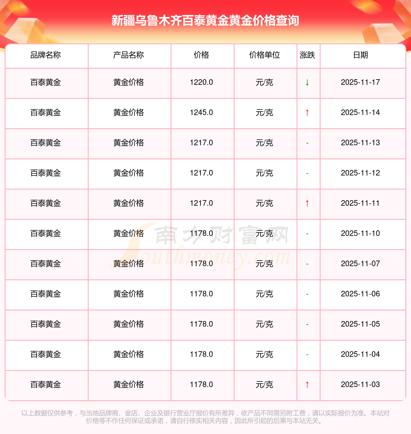求问新疆乌鲁木齐百泰黄金今日一克黄金的价格是多少?今日新疆乌鲁木齐百泰黄金黄金价格查询,今日新疆乌鲁木齐百泰黄金黄金价格为1220.0元/克。